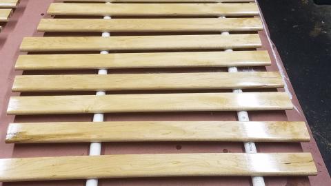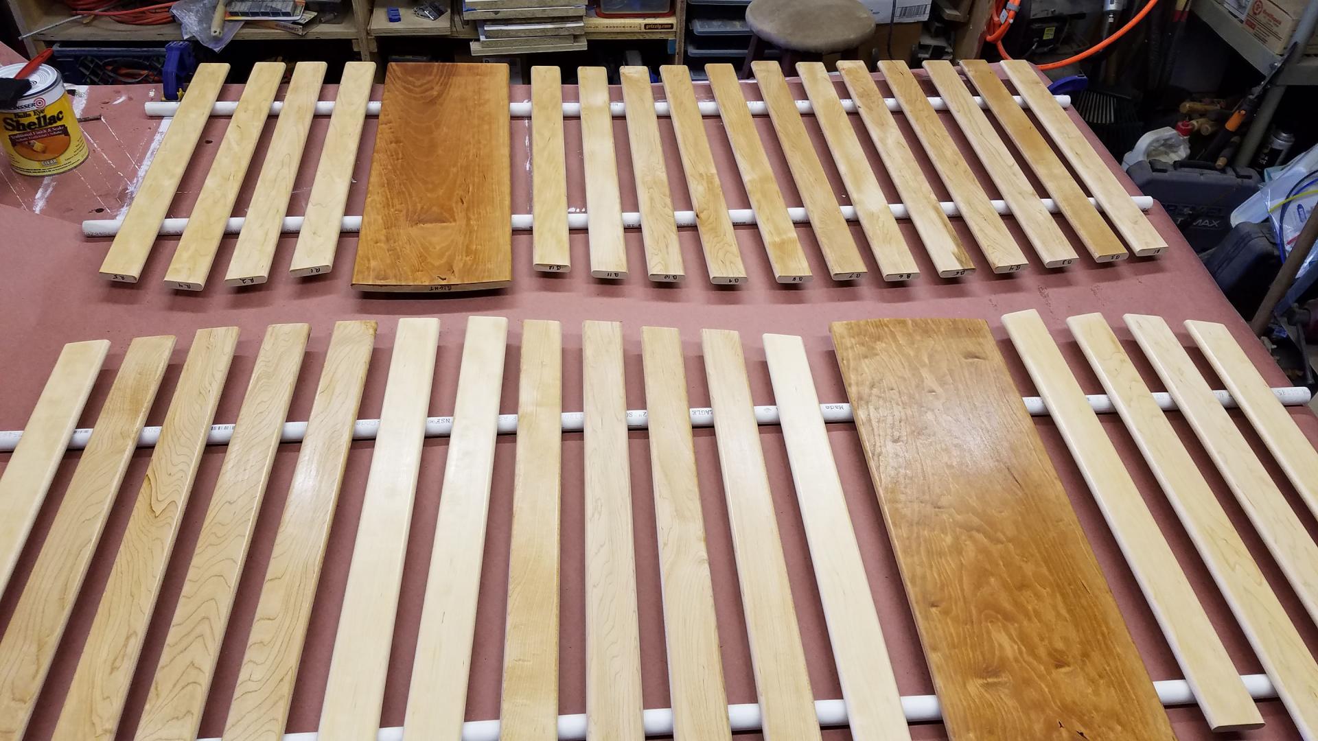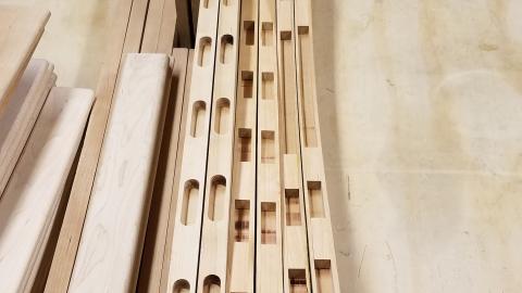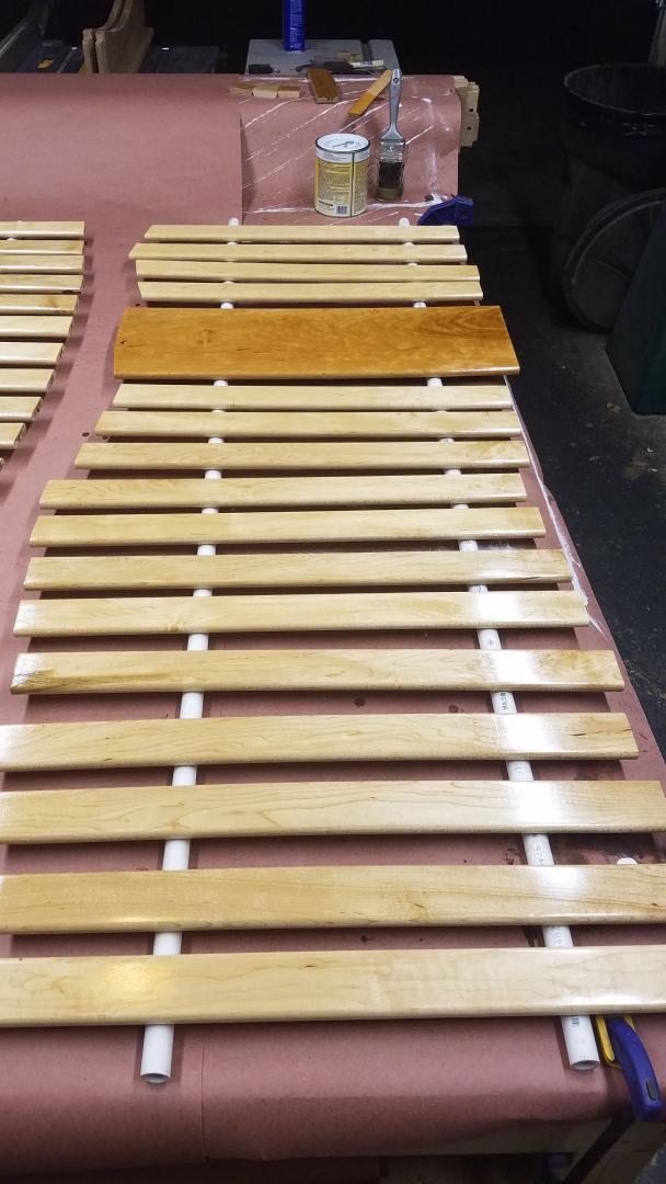 All the pickets just float in their mortises and aren't glued in, so I wanted to apply finish to them before final assembly. This way there's no concern of the finish cracking at the joints or seeing a faint line of unfinished wood.