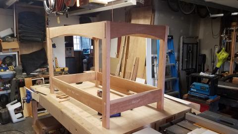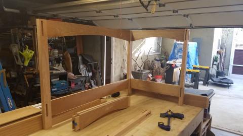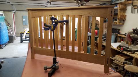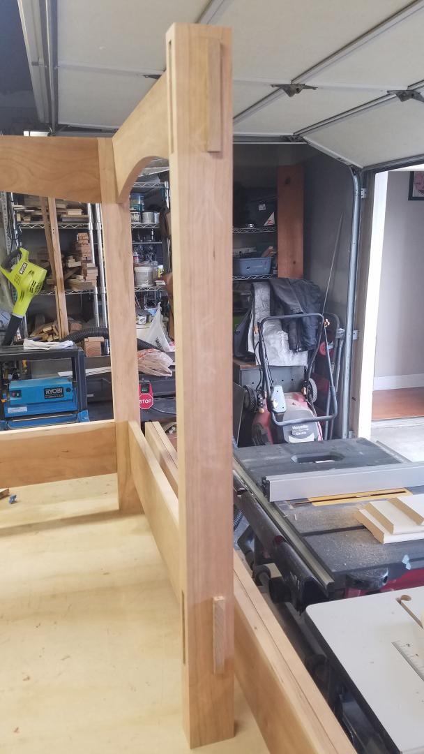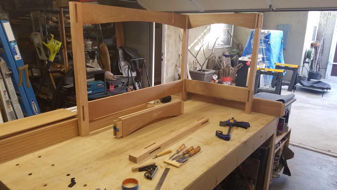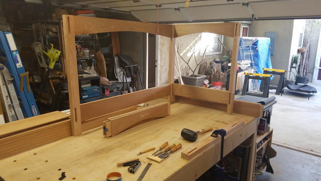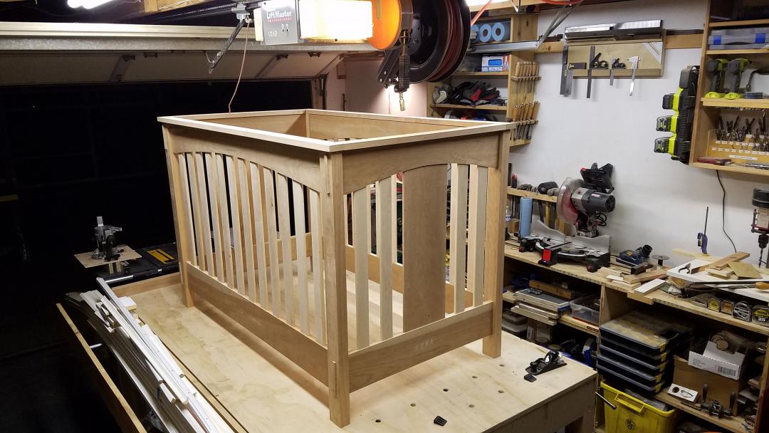 After all the mortises were done, and the pickets were cut to match the curve, I had to do a quick dry assembly to see the whole thing as a crib. I was pretty happy with it.