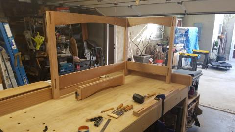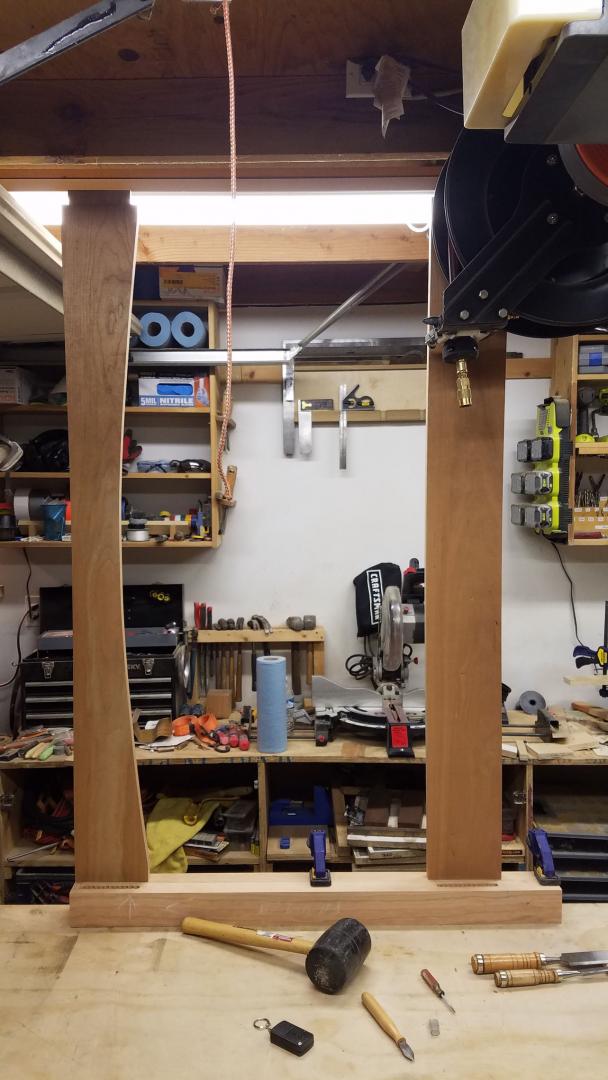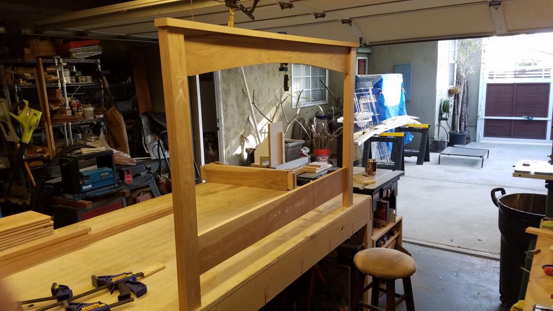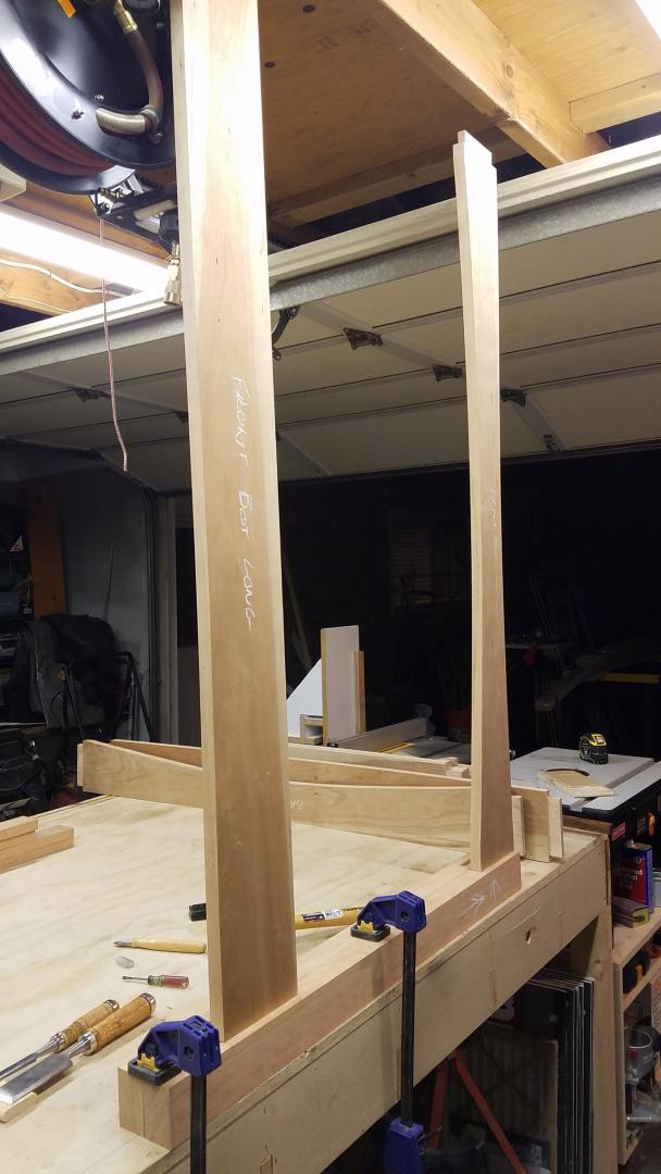 With the draw-bored tenons, no clamps were needed to hold the rails during glue up. Which is good, because I don't have clamps long enough to do that.