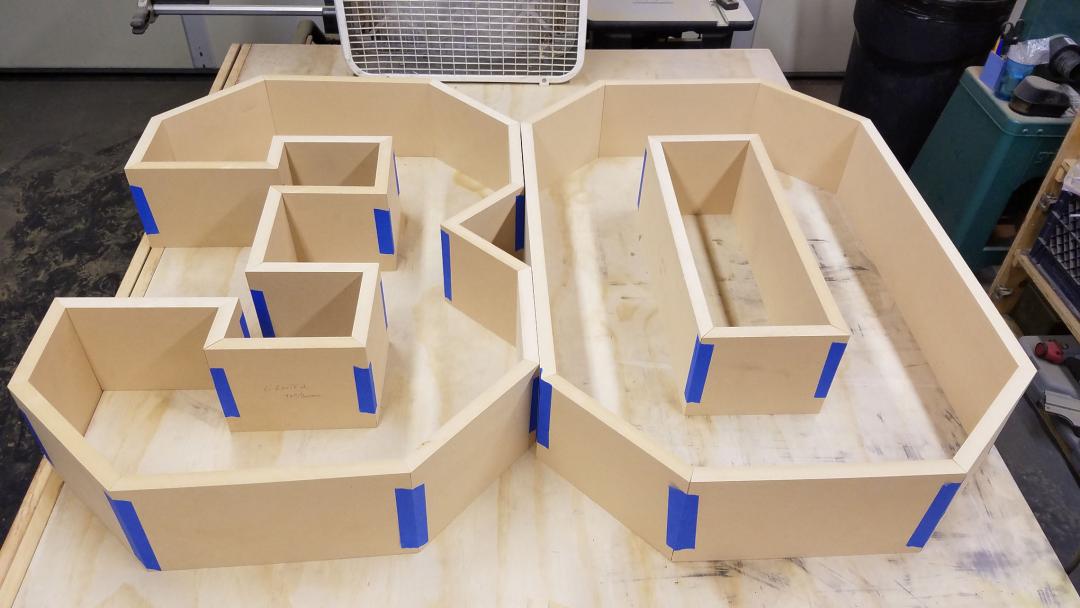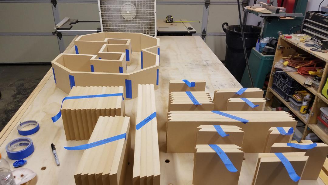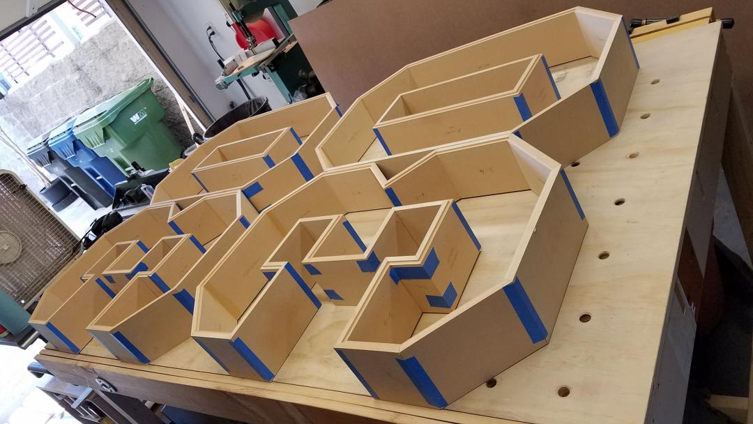 After I cut all the parts, I grouped and labeled them with blue tape and a Sharpie to keep them organized. I did a test assembly of each number to ensure all the parts were sized properly and the angles all worked out.